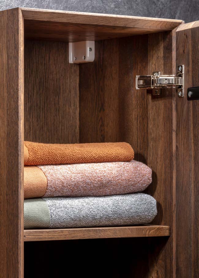 Uiterst hoogwaardig gefineerd met hout. Warme, zachte uitstraling. Het hoogwaardige Celio maatwerk badkamermeubel is, net als de Allasio en Trentino, uitermate geschikt voor toepassing van een maatwerk wastafel of wastafelblad in combinatie met een opbouw-, onderbouw- of vlakinbouwwaskom.
