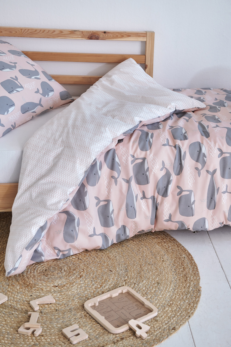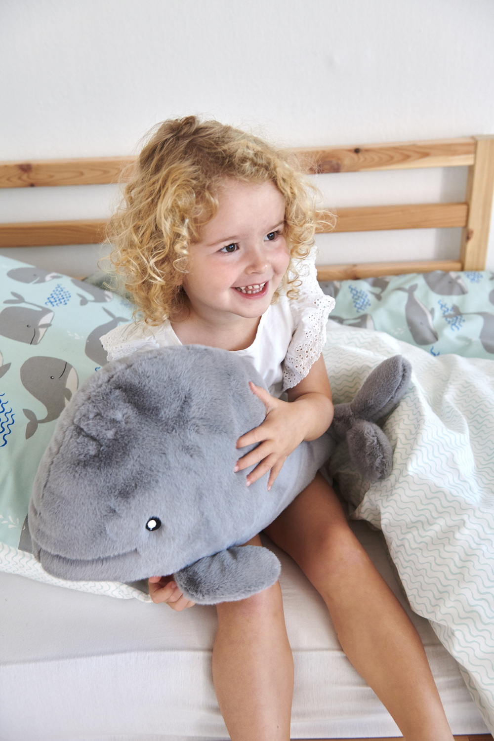 Schip in zicht! Spring aan boord van het schip op dekbedovertrek Manoas en zeil mee naar een tropisch paradijs. Misschien spot je in het water wel net zo’n leuke grijze walvis als op dekbedovertrek Wally – er zijn er genoeg! Of ga voor het superoriginele kussen Wally: je enige kans óóit om te knuffelen met een walvis.