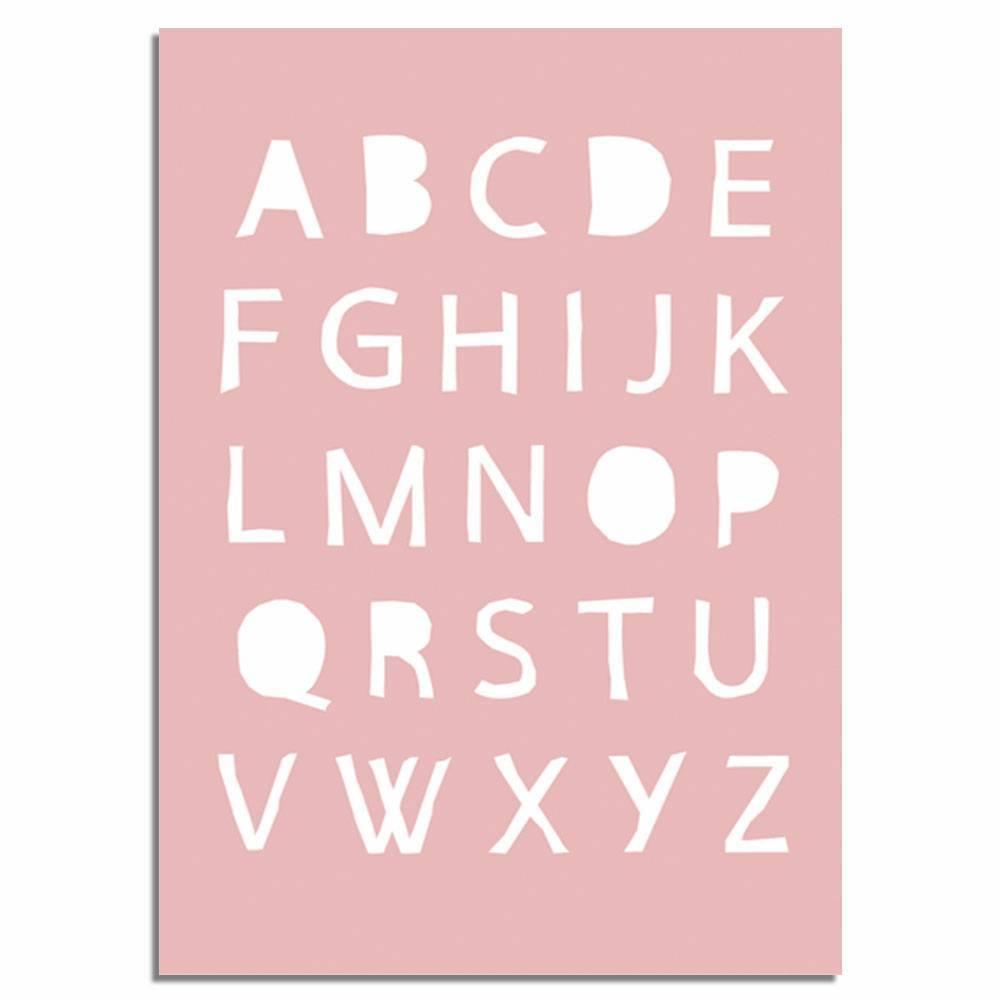Je kunt niet vroeg genoeg beginnen met leren lezen. Ik deze poster van Designclaudshop met het alfabet erop leuk omdat hij niet alleen leerzaam is, maar ook heel vrolijk: de letters zijn speels en de achtergrond is roze. Perfect voor op een meisjeskamer!