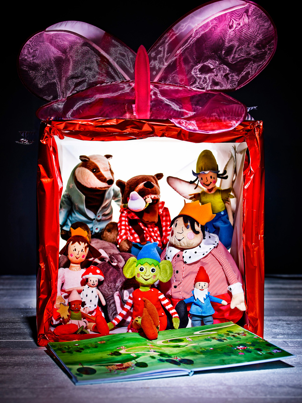 Aan een sprookjesboek komt een eind, maar dat betekent niet dat het verhaal is afgelopen. Met de knuffels gebaseerd op de karakters uit het boek De Prinses en het Geluk kunnen kinderen uren doorspelen. Van een prinses en een gevleugelde draak, tot een schattig elfje en de grote boze wolf. De bijbehorende oma past in de bek van de wolf en kan gelukkig weer uit zijn buik gered worden. Verkrijgbaar vanaf 1 oktober.