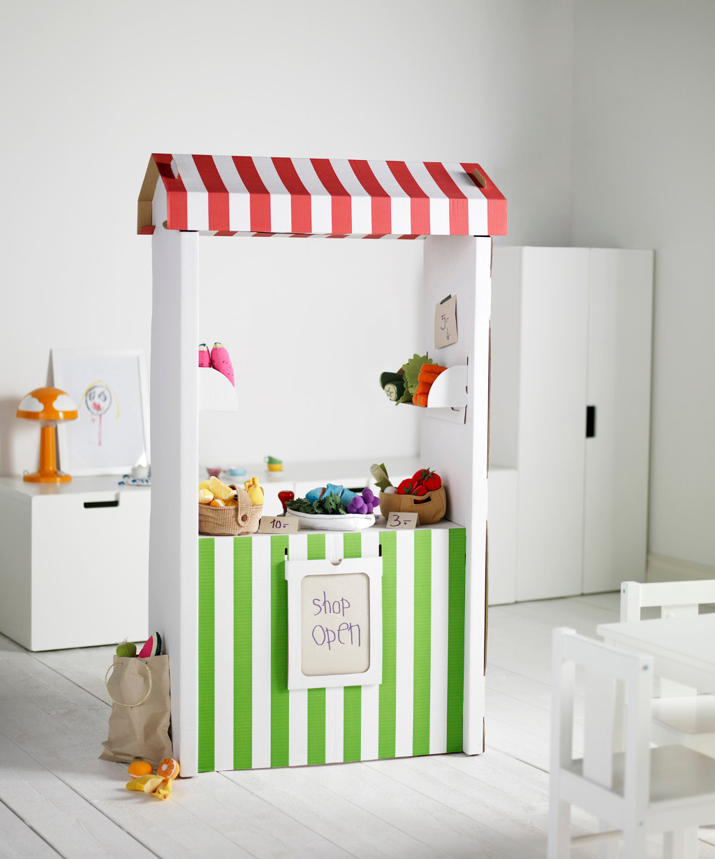 Marktkraam, bioscooploket of toch een poppenkast? De SKYLTA marktkraam kan veel verschillende vormen aannemen en moedigt kinderen aan om hun verbeelding te gebruiken. De kraam is gemaakt van karton en daardoor niet alleen lichtgewicht, maar ook heel betaalbaar. SKYLTA marktkraam: € 9.99.