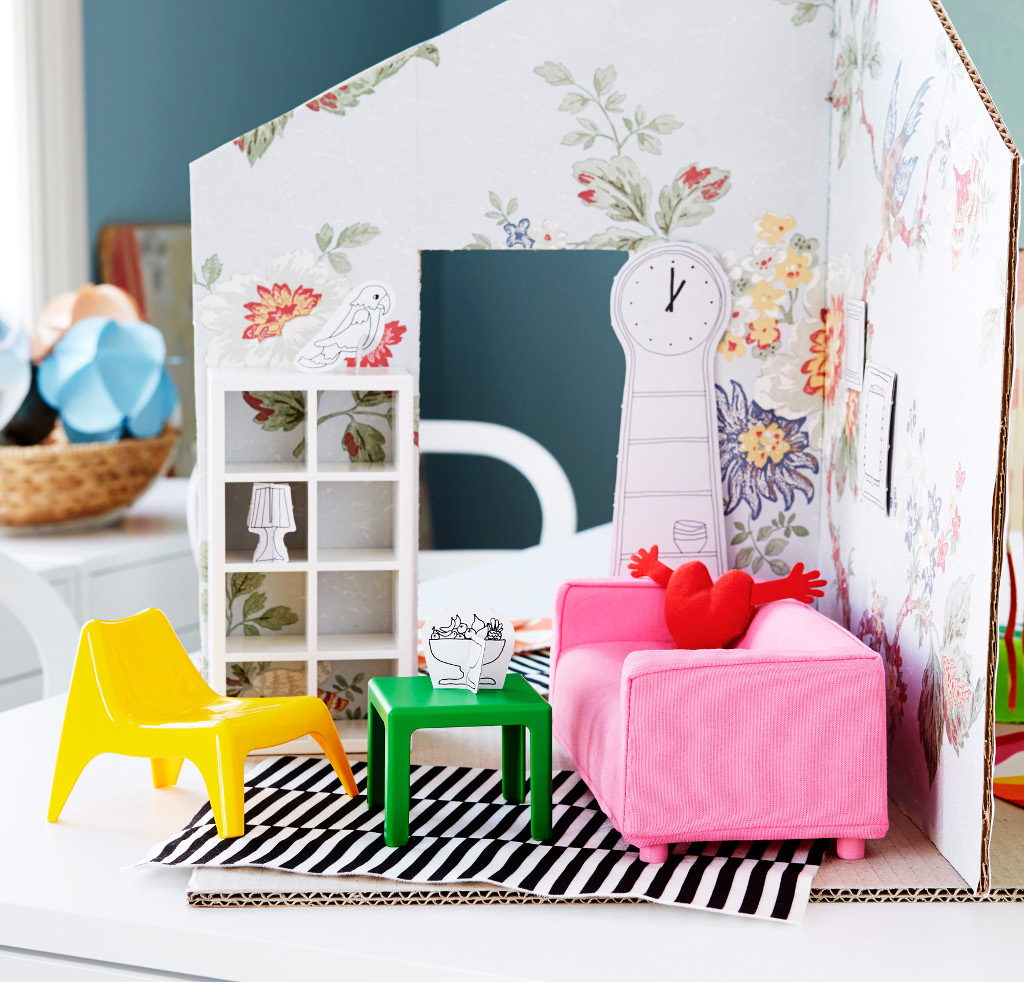 Met de HUSET poppenmeubels zijn de meest populaire IKEA producten verkrijgbaar voor zakgeldprijzen. Met de miniatuurversies van IKEA iconen kunnen kinderen een poppenhuis maken dat lijkt op hun eigen huis. Het draagbare SPEXA poppenhuis van karton vormt het ideale decor voor de meubels. HUSET poppenmeubels: € 9.99. SPEXA poppenhuis: €3.99.