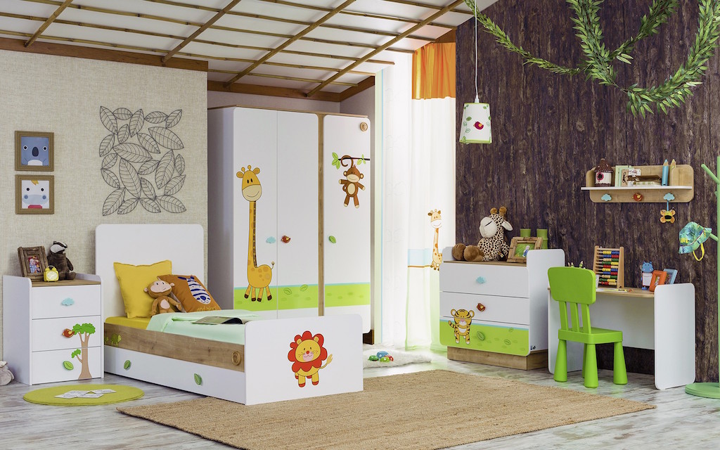 Als je begint met de inrichting van een kinderkamer, is het heel handig om direct te starten met meegroeibed. Dit voorbeeld is geschikt voor kleintjes van 0 tot 5 jaar, omdat het bedje letterlijk meegroeit met je kind; van een baby ledikantje, tot een ledikant met een lage bodem en als laatste een juniorbedje. Dat is makkelijk en vooral duurzaam, want doordat je niet steeds een nieuw bed hoeft aan te schaffen, bespaar je geld én ben je aardig voor het milieu.