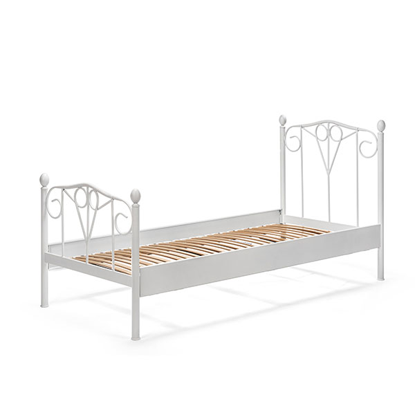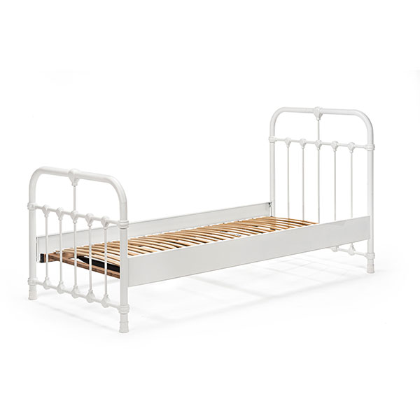 De kinderbedden in onze collectie zijn stevig en kunnen tegen een stootje. De stalen buizen hebben een doorsnede van 5cm. Het bed zal niet kraken of piepen, doordat de zijden aan het hoofdbord worden gemonteerd met schroeven. Het bed is met een krasbestendige lak behandeld. De zijden zijn hoog genoeg, zodat je de bodem niet ziet liggen.