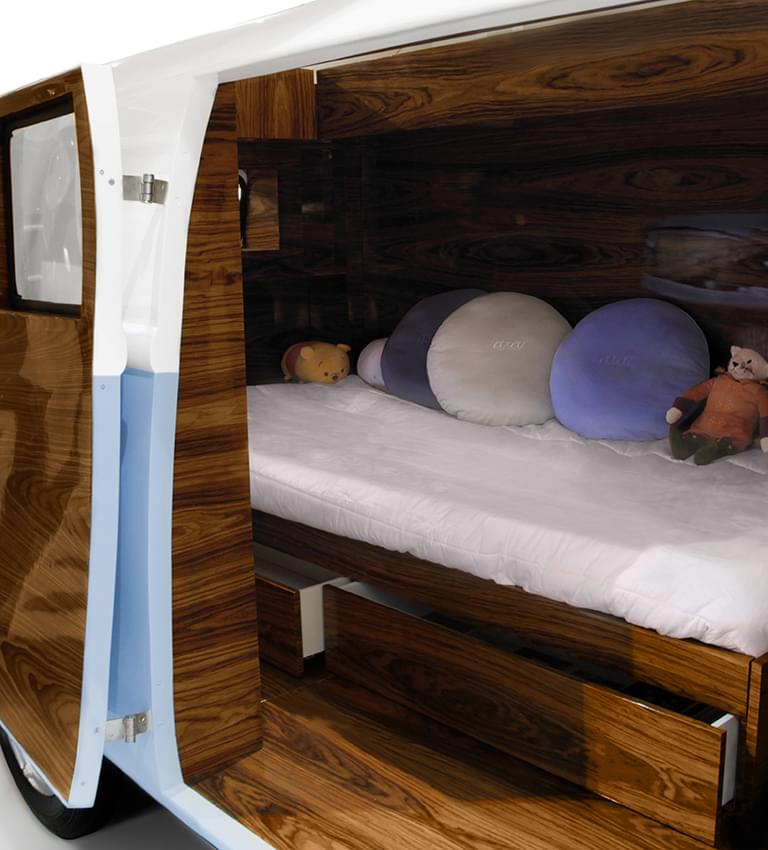 Het leuke is verder dat dit bed zowel ouders als kinderen zal aanspreken: ouders omdat zij de inspiratie van één van de meest bijzondere auto's er overduidelijk in herkennen; een symbool voor vrijheid en vrolijkheid. Kinderen zullen hierin echter het bekende karakter uit de Disneyfilm 'Cars' herkennen: Fillmore, de hippie bus.