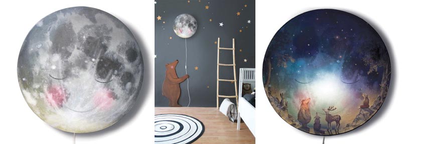 De Wonder Wandlampen prikkelen de fantasie en laten kinderen met gemak in slaap vallen. De collectie bestaat uit vier verschillende, cirkelvormige lampen (diameter 45 centimeter): Ga Slapen Maan, Kleine Beer op Reis, Elfjesbos, Sterrenvissers. Alle motieven sluiten naadloos aan bij de huidige trends in kinderinterieur. Maar er is meer: elke lamp vertelt een verhaal. Vlieg bijvoorbeeld samen met Kleine Beer op de rug van Vogel. Of bewonder met Beer, Vos en Hert de flonkerende sterrennacht. Er hoeft alleen een spaarlamp in de lamp et voilà, het sprookje komt tot leven.