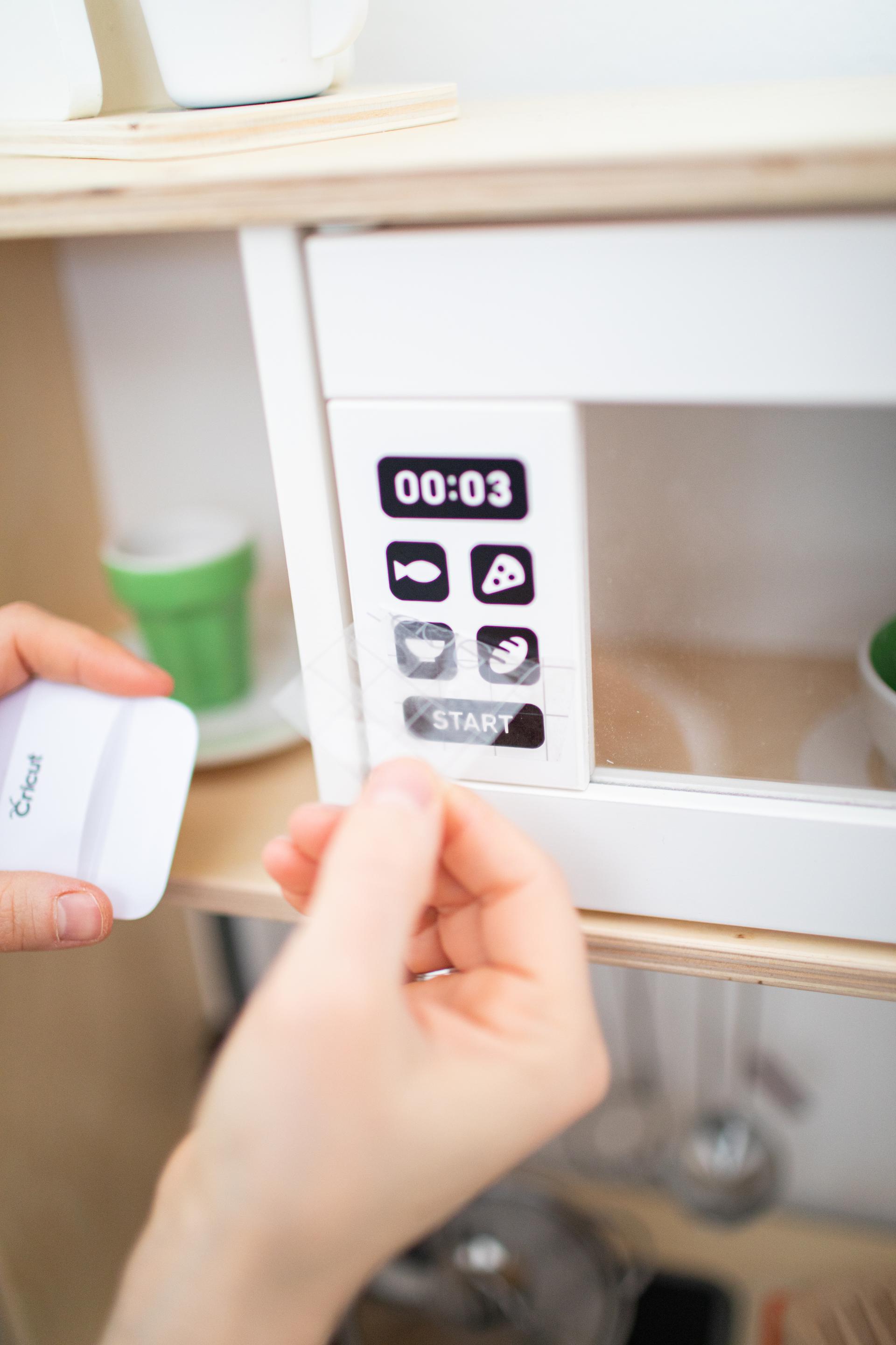 Het tweede doe-het-zelf-idee is het perfecte project voor iedereen die van een echt persoonlijke toets houdt: een kinderkeukentje. Dankzij Cricut tover je de kant-en-klare keuken die je in de winkel gekocht hebt om tot iets heel persoonlijk, met veel leuke details.