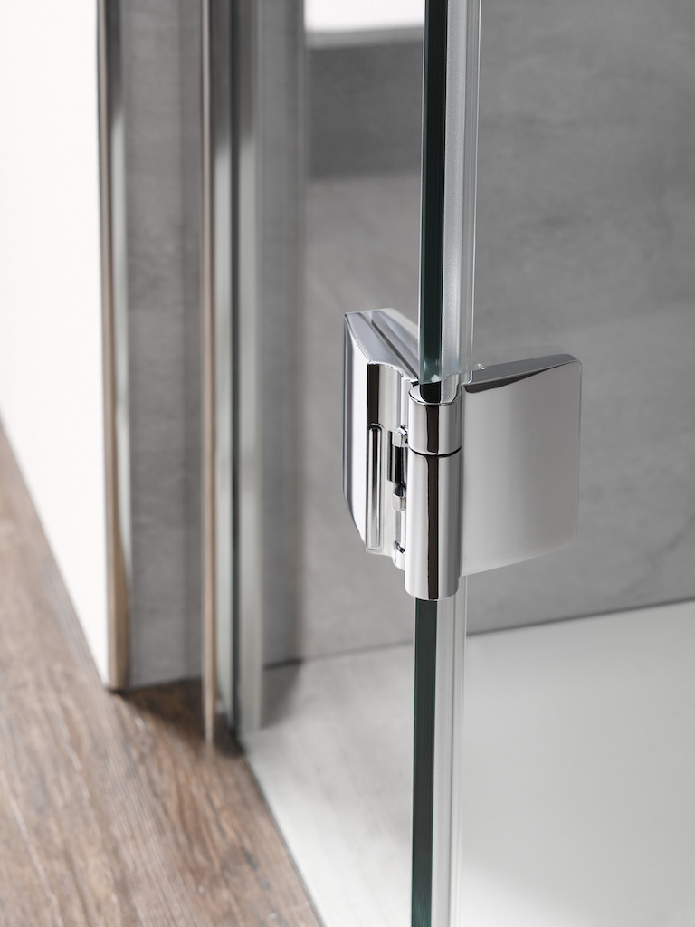 Niet alleen de innovatieve techniek van het Aperto-scharnier overtuigt, ook optisch vormt de nieuwe serie een echt hoogtepunt. In het frisse en populaire Softcube-design springen scharnieren, grepen, wandprofielen en stabilisatiebeugels met afgeronde hoeken in het oog. Tegelijkertijd zijn de elementen bewust minimalistisch vormgegeven, zodat de royale glasoppervlakken de badkamer groter laten lijken. Een stevige stabilisatiebeugel, die ook bij andere HSK series betrouwbaar wordt toegepast, zorgt ervoor dat de glaselementen stevig op hun plaats worden gehouden. De clipsprofielen garanderen bovendien een bijzonder eenvoudige montage van de douchecabine. Voor de gebruiker heeft de nieuwe serie nog een voordeel: de Aperto-scharnieren liggen binnen gelijk met het glas, wat de reiniging en het onderhoud aanzienlijk vergemakkelijkt.