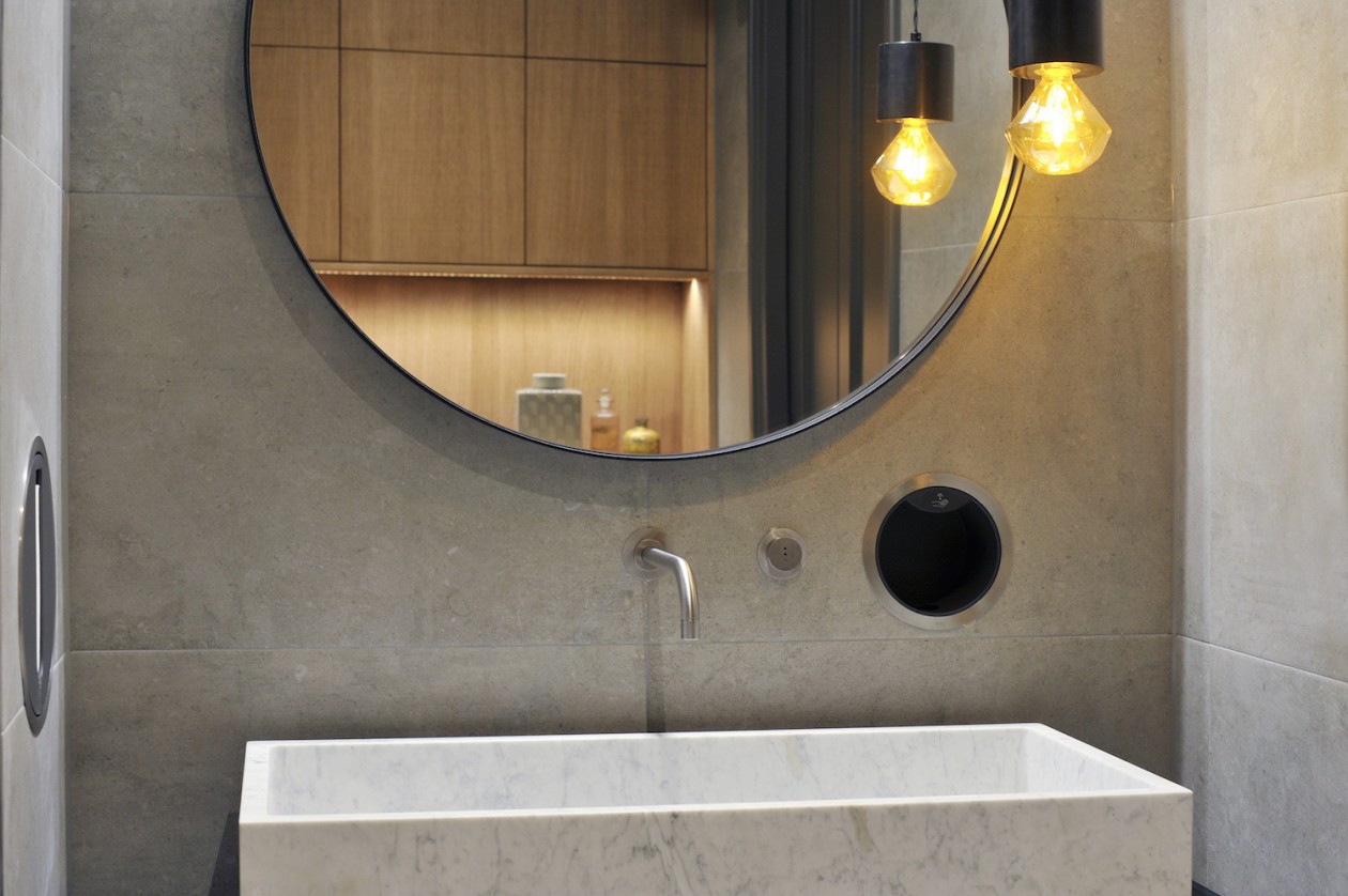 Thijs Smeets is de ontwerper van de Metropol Collectie van Tortu. Een bad met een bijpassende opzet wastafel.