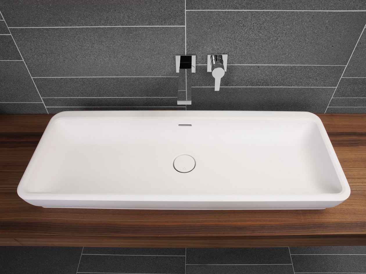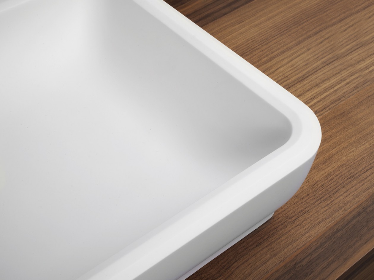 Het bad en de wastafel zijn beide van het materiaal Cristalplant. Cristalplant is een materiaal wat bestaat uit een hoog percentage natuurlijke mineralen en een laag percentage polyester- en acrylpolymeren. Het materiaal is speciaal gecreëerd voor sanitair producten en gemakkelijk in onderhoud. Het wordt ook gekenmerkt door een unieke “soft touch” en een schoonheid wat doet denken aan natuursteen. Bovendien is het 100% recyclebaar en vuurbestendig.