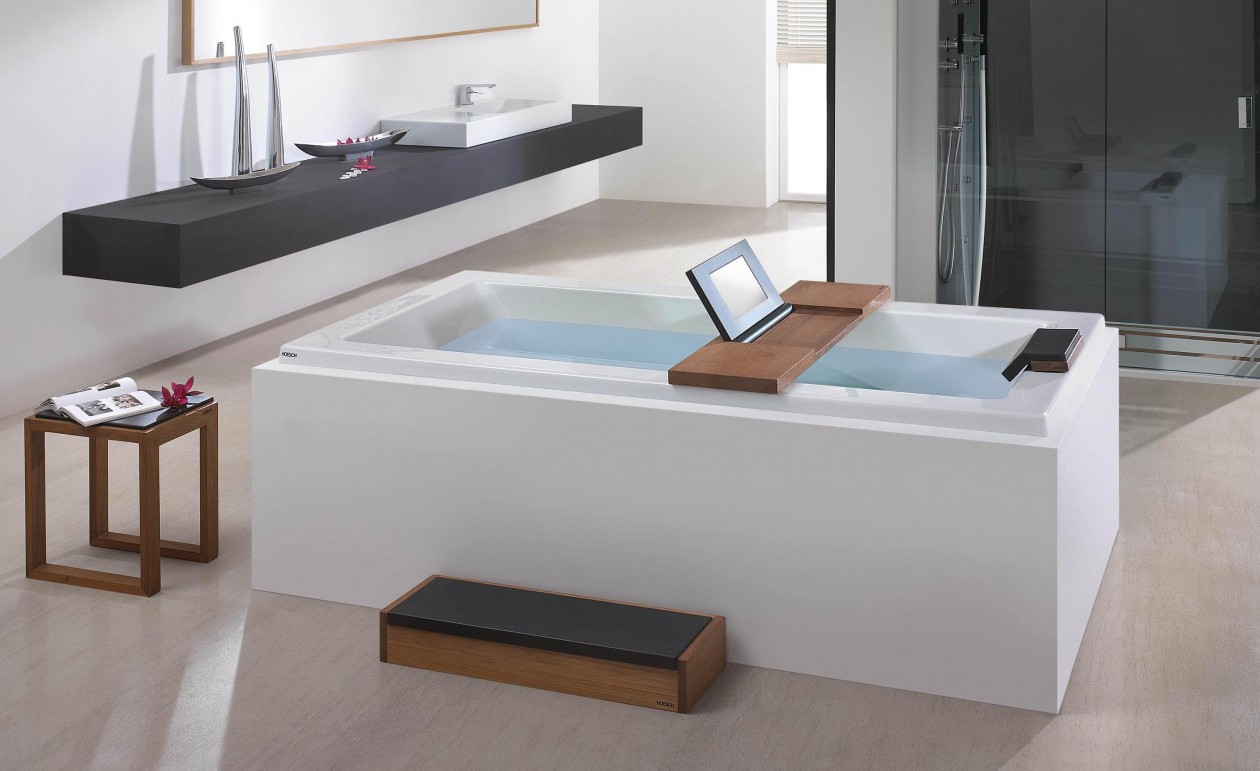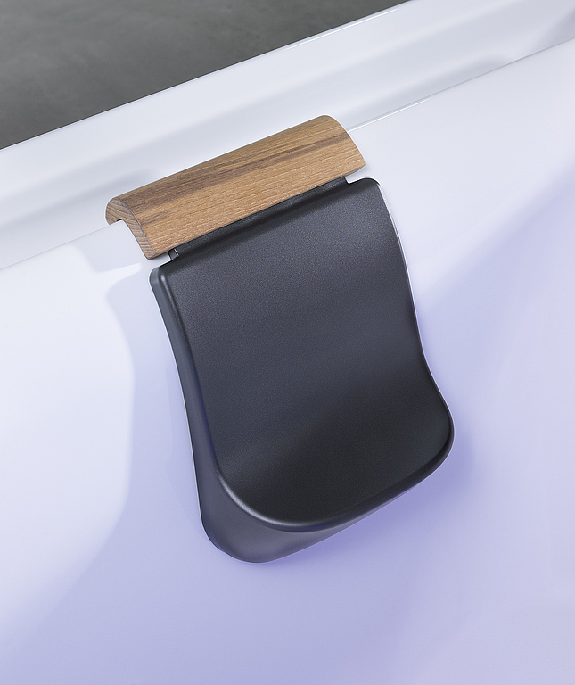 Met een slipvaste instaphulp stapt u veilig in ieder bad – klaar voor het genot. Wanneer we langzaam in stomend water onderdompelen, voelen we op intense wijze hoe ons lichaam vervuld wordt van gelukzalige gevoelens. Laat uw hoofd op de comfortabele neksteun rusten en geniet van een pure wellnessbeleving. Het passende badplateau met spiegel biedt voldoende ruimte voor een cocktail of een boek – net waar u zin in heeft. Wanneer u weer volledig bent opgeladen, kunt u met behulp van de geïntegreerde badhandgreep eenvoudig en met voldoende houvast uit het bad stappen. Uw verzorgingsproducten of andere benodigdheden heeft u vervolgens direct bij de hand, wanneer deze op een brede muurplank, een stevige kruk of een dressboy zijn geplaatst.