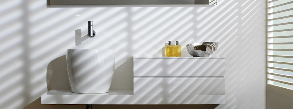 De collectie omvat onder andere diverse wastafels, hoogwaardige badkamermeubels en twee badkuipen. Een frisse kijk op de klassieke vorm van wastafels.