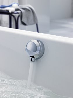 Het nemen van een warm bad zonder aanwezigheid van een kraan is mogelijk met de subtiele bad-vulcombinatie sifon van Geberit. Het water stroomt het bad niet in via de gebruikelijke kraan maar via de overloop dat voorzien is van de combinatie sifon. Tegelijkertijd blijft de overloop ervoor zorgen dat het overtollige water wegstroomt wanneer het bad te ver wordt gevuld met water. Door de samensmelting van design en functie van deze sifon is de kraan niet meer nodig en staat esthetiek in de badkamer voorop.