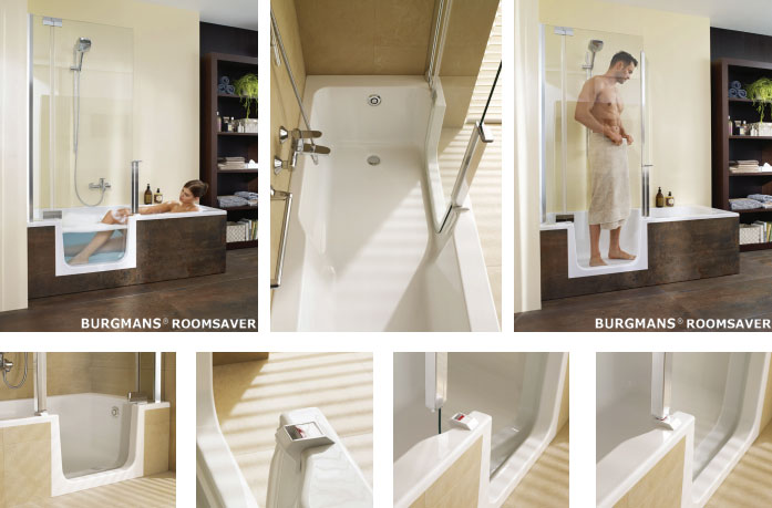 Burgmans Sanitair introduceert (onder eigen label) de Burgmans® Roomsaver. Een inloopbad én een ruime douche in één! De geïntegreerde douchedeur zorgt ervoor, dat je veilig en comfortabel kunt instappen en uitstappen. De Roomsaver is leverbaar in de uitvoeringen 160x75x55cm en 170x75x55cm, met de douchezijde aan de linkerkant of aan de rechterkant. Met de komst van de Roomsaver heeft Burgmans Sanitair een zeer breed assortiment inloopbaden.