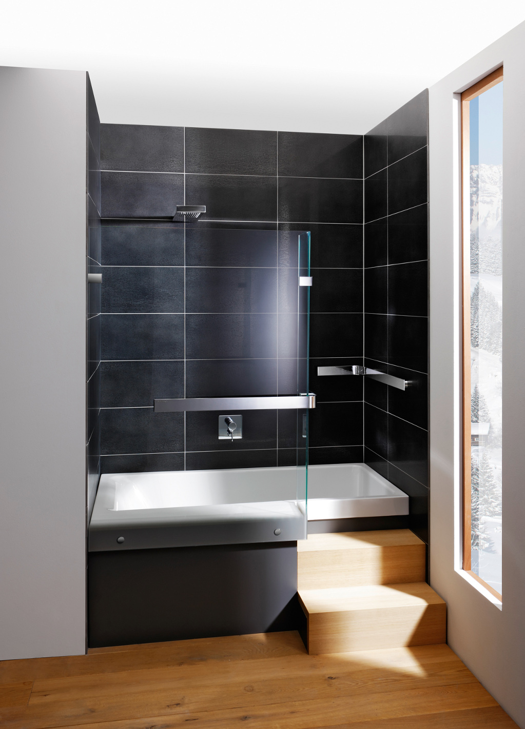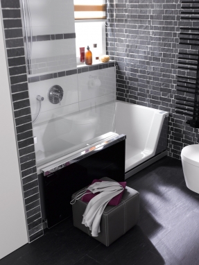 Achter de Repabad Stairway gaat het idee schuil van een gecombineerde oplossing van douche en bad met comfortabele instap.