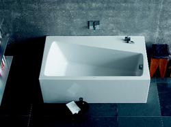 Er ontstaat een nieuwe visuele kwaliteit, die gelijktijdig ook royale afzetvlakken en plaats voor kranen biedt. De Monolith beschikt over afmetingen van 170 x 100 cm en is zowel met een hoek naar links, als een hoek naar rechts beschikbaar. Naar wens kan het bad met air- en jetsystemen alsook met een lichtmodule worden uitgevoerd.