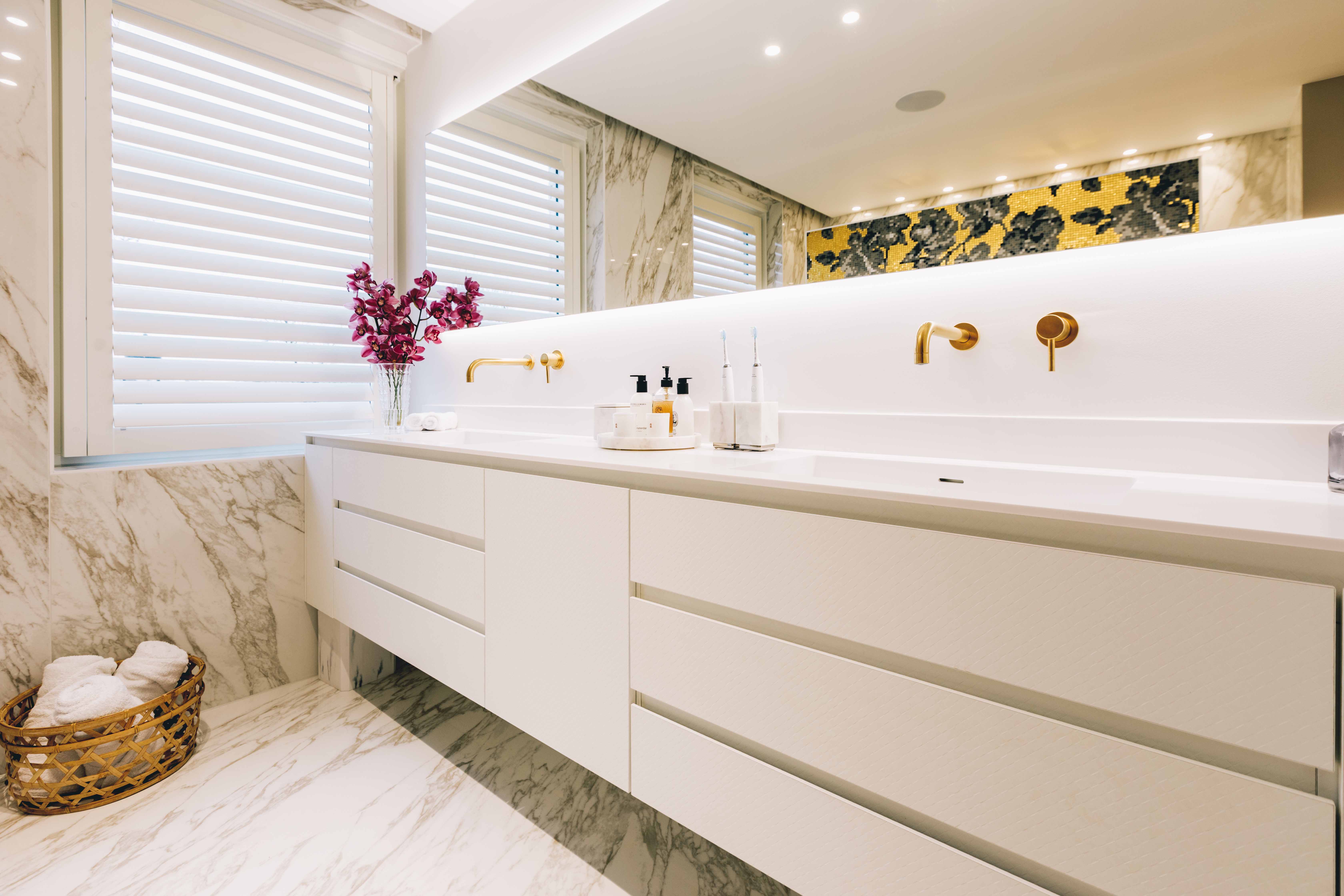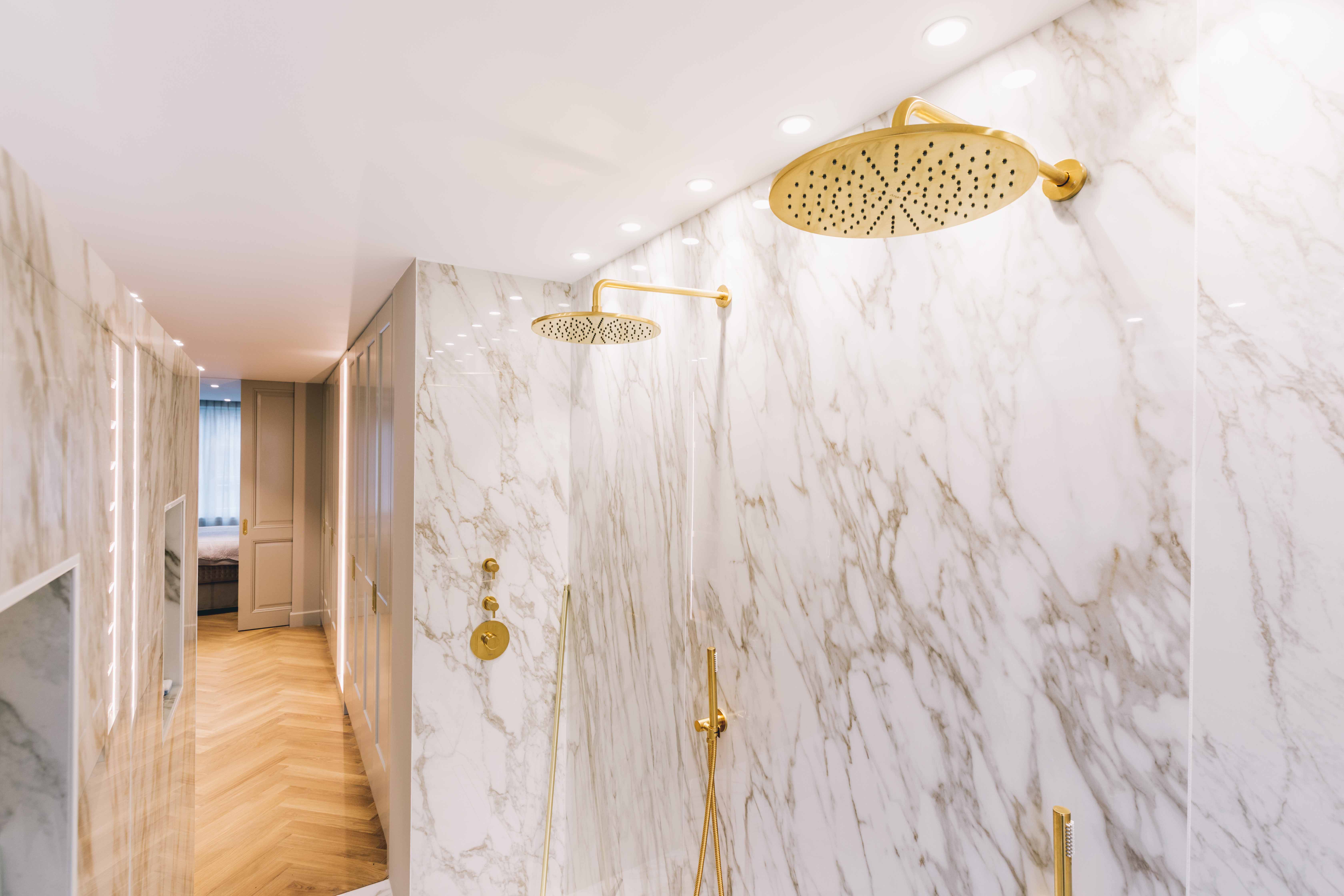 Ben je fan van de goud en marmer trend? Dan moet je zeker eens een kijkje nemen bij deze luxe badkamer in Badhoevedorp.