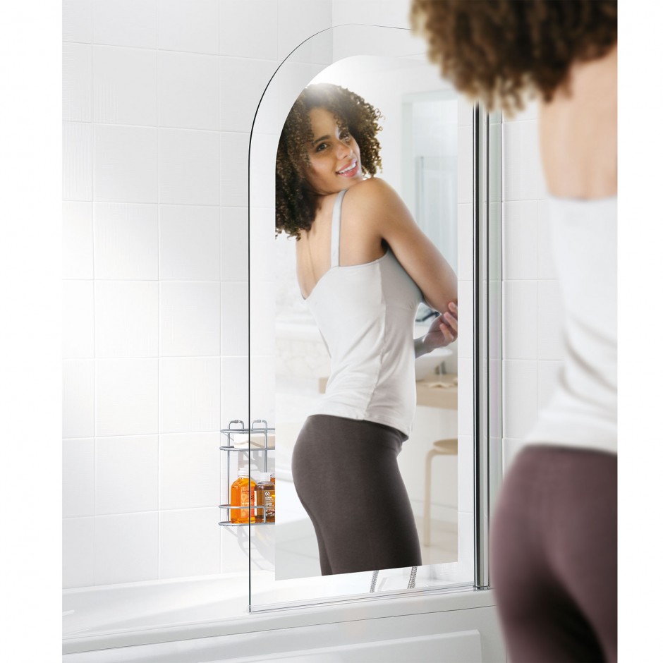 De spiegelcoating volgt de mooie afgeronde lijn van de badwand. Met deze geïntegreerde spiegel bespaar je ruimte in de badkamer en heb je meer privacy als u aan het douchen bent. Deze badwand is 1400 mm hoog, 800 mm breed en is verstelbaar van 800 tot 825 mm. De badwand scharniert naar binnen en naar buiten, waardoor deze eenvoudig schoon te maken is.