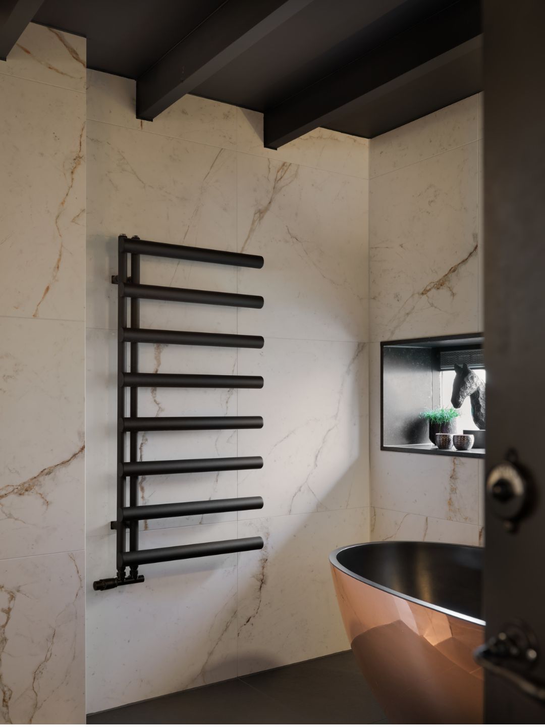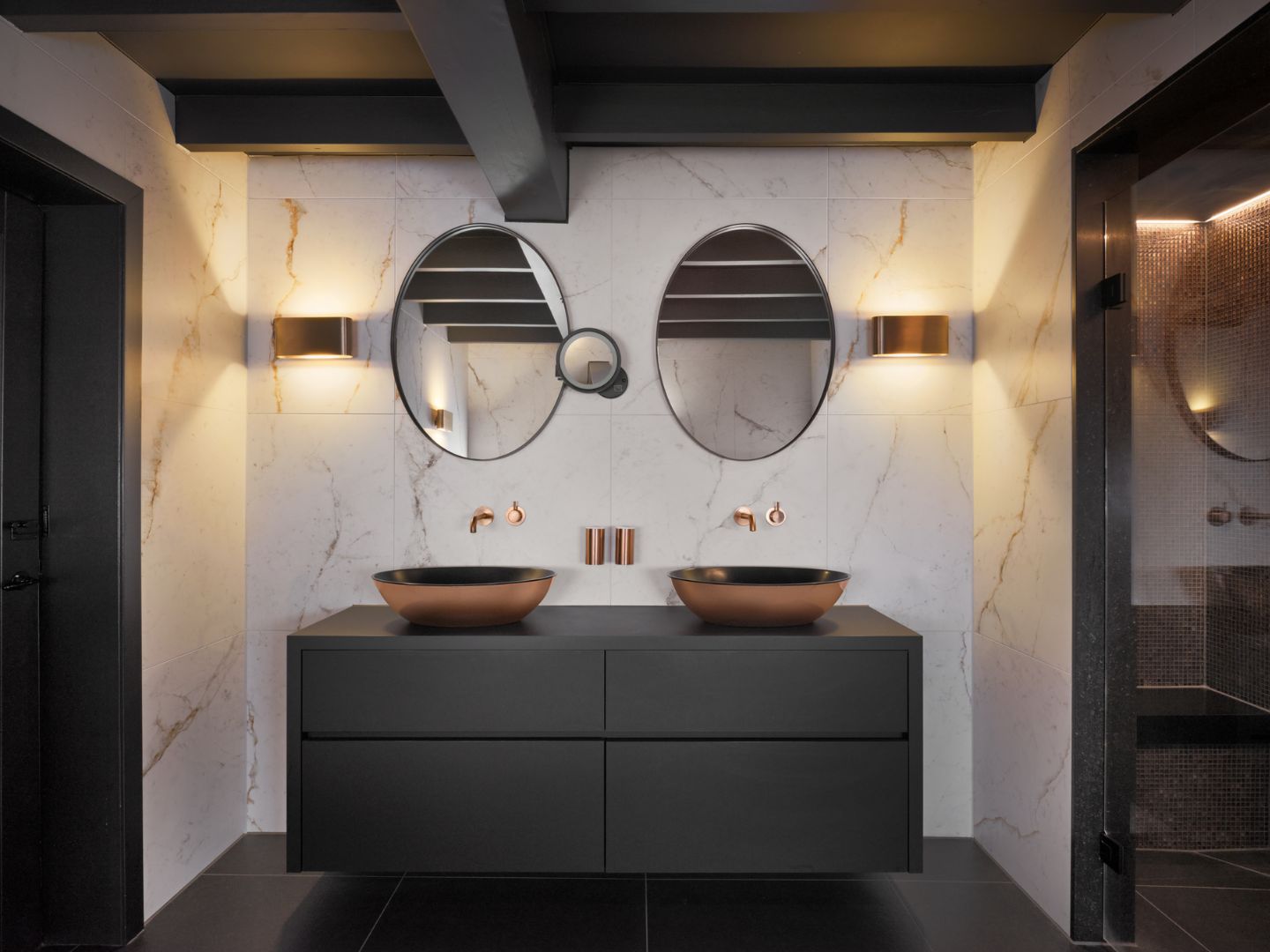 Een badkamer met brons die perfect aansluit bij de bestaande inrichting van het huis. Met deze wens kwamen de bewoners naar De Eerste Kamer Badkamers.