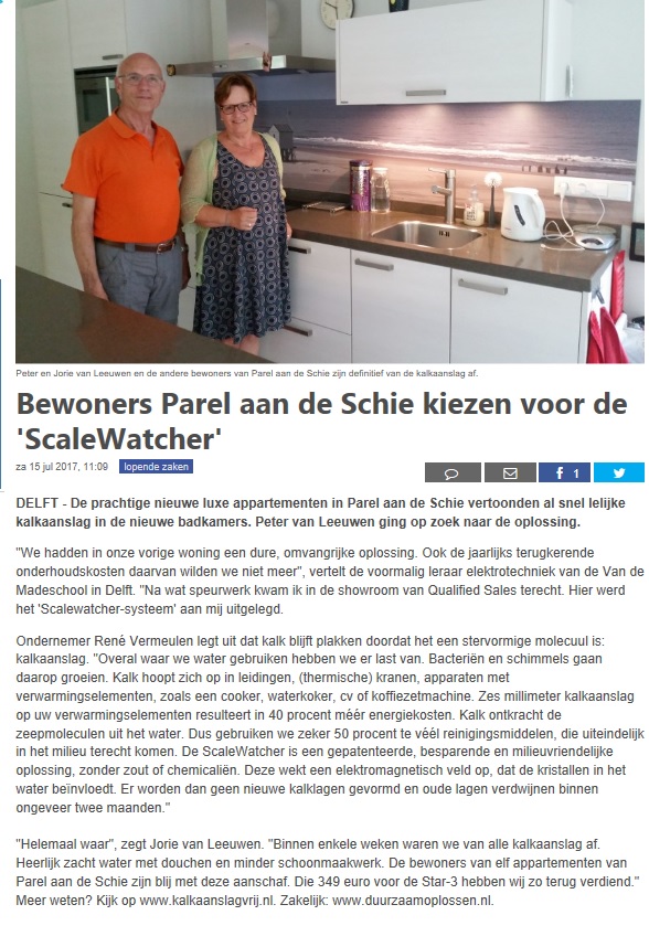 ScaleWatcher is de slimste en voordeligste wterontharder. Een milieuvriendelijke oplossing v.a. € 349,-.
