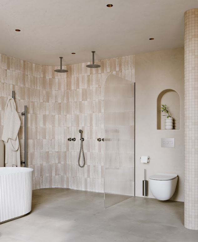 Materialen, vormen en kenmerken in een Organic Textures badkamer