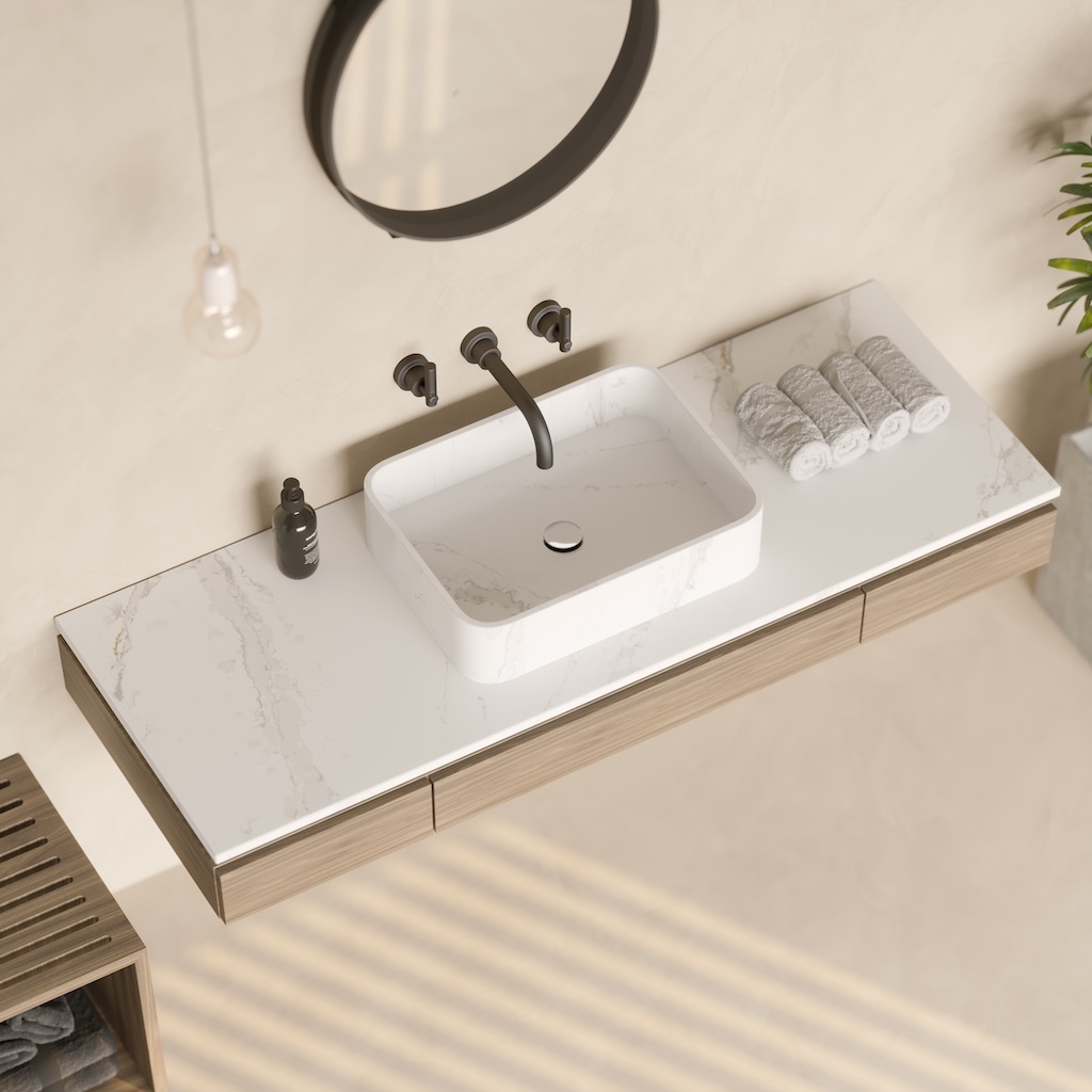 Wastafel en wastafelbladen voor elke ruimte met een breed scala aan designs met een geometrische balans. De duurzaamheid van een tijdloze esthetiek, de hardheid en functionaliteit van de nieuwste generatie Cosentino materialen, Silestone en Dekton.