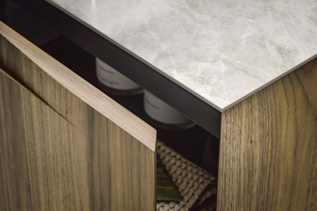 Sierlijke wastafels en meubels met geïntegreerde details voor een tijdloze, naadloze badkamerstijl.