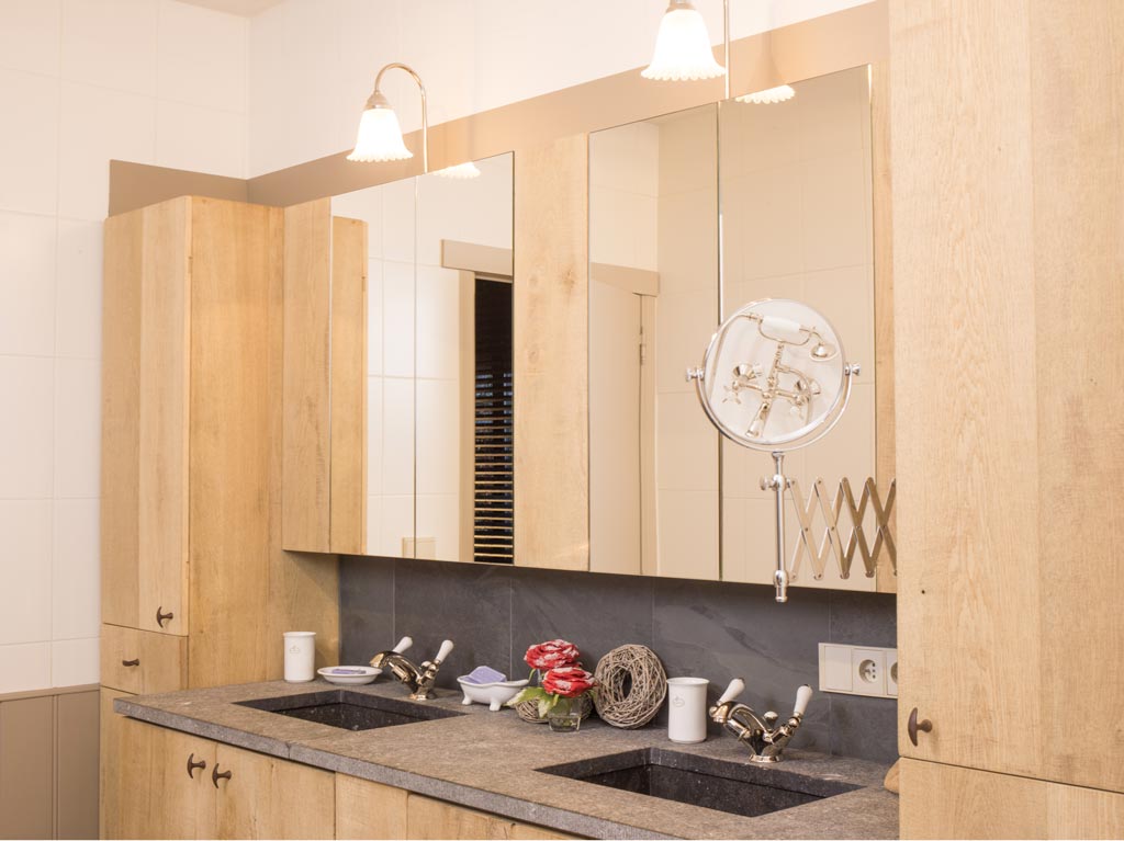 De badkamermeubels ontworpen door Kenny&Mason worden vervaardigd uit massief eerste keuze hout speciaal voor in de badkamer.