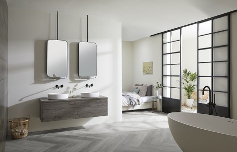Taste badmeubelen hebben een push-to open ladensysteem, hierdoor zie je geen grepen of greeplijsten.