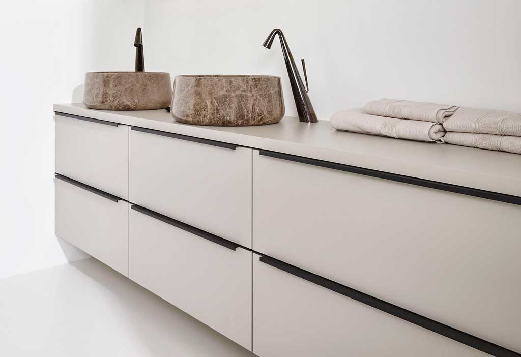 Ook de maatwerkwastafels in marmer en keramiek werden heel positief onthaald.