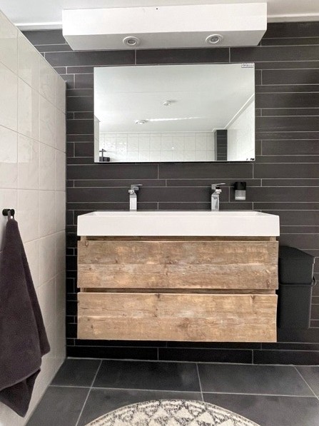 Steigerhout is ook opgewassen tegen vocht in de badkamer.