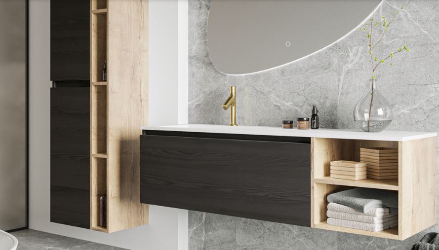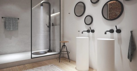 Het zit hem vaak in de details. Zo kun je met een aantal eenvoudige aanpassingen in een handomdraai een industriële stijl creëren. De industriële stijl wordt gekenmerkt door het gebruik van veel zwarte elementen, zoals zwarte waskommen en wastafels. Deze zijn mooi te combineren met een zwarte kraan en zwarte greeplijsten. Probeer ook eens een kraan in de kleur gun metal, dit geeft het badmeubel een stoere look.