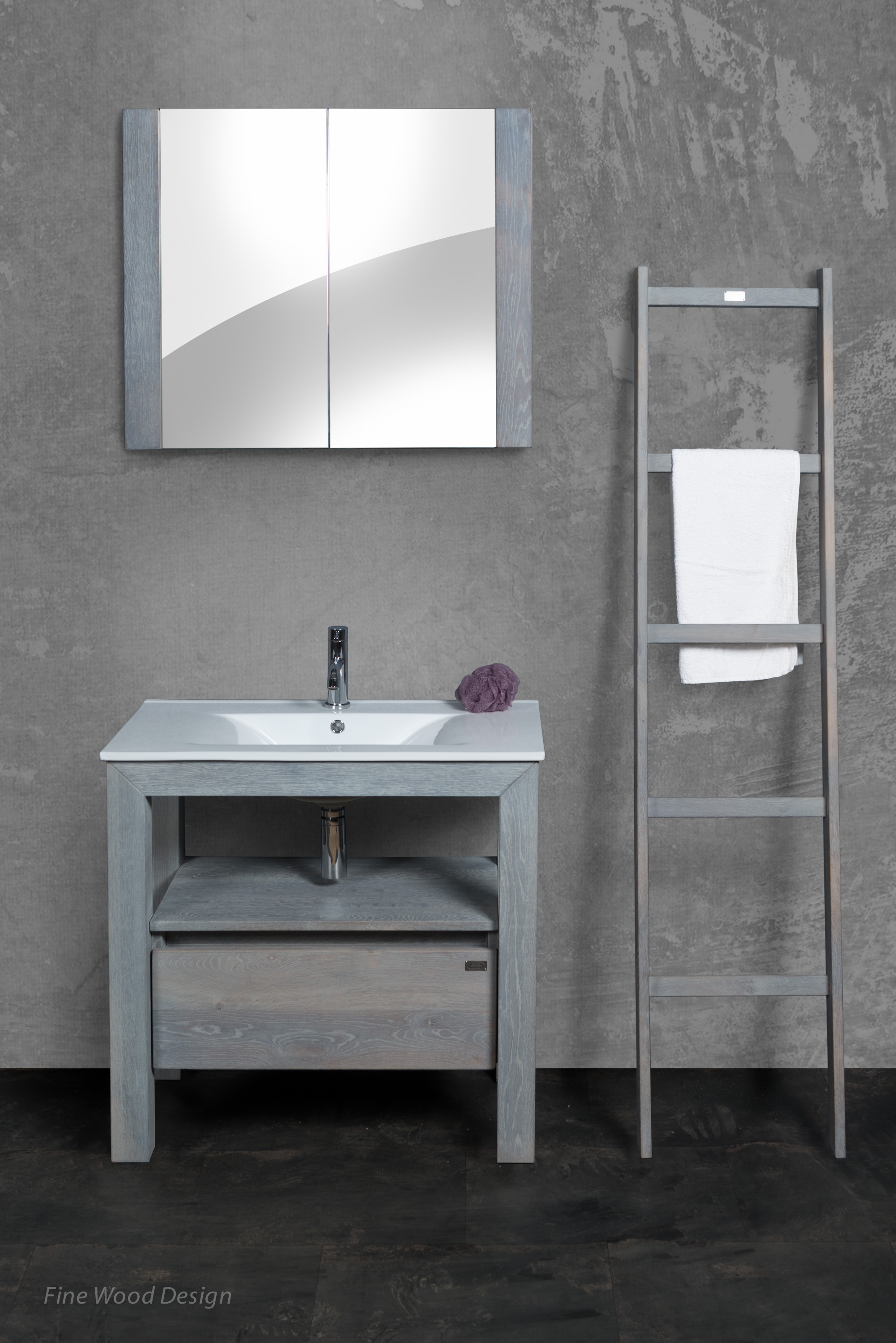 van vocht tegen te gaan. Bij deze serie heeft u ruime keuze uit vele moderne wastafels, zowel keramisch als natuursteen. Ook kan de wastafelkast gecombineerd worden met een bovenblad en een fraaie waskom. Maak uw droommeubel af met een mooie spiegel in kader of een dubbelzijdig gespiegelde spiegelkast. De handdoekladder is er in twee verschillende uitvoeringen en vormt een mooie eyecatcher in uw badkamer.