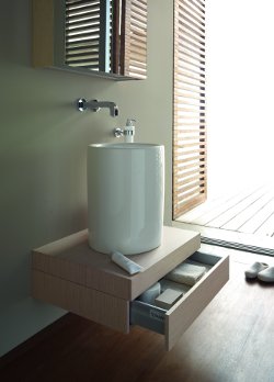 De laatste tijd staan badmeubels steeds meer in de belangstelling. Nieuwe trends zoals wasschalen en opzetbakken hebben deze ontwikkeling versterkt. De dragende rol voor ronde, hoekige of ovale wasbakken neemt het meubelconsole op zich, die met verschillende afmetingen en een veelvoud aan oppervlakken individuele inrichtingsoplossingen mogelijk maakt en zelfs voor de kleinere badkamer passende oplossingen aanbiedt. Duravit biedt een uitgebreid console programma aan en dit programma is onlangs uitgebreid met een console met een dieptemaat van slechts 36 cm.