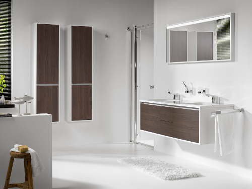 Het badmeubelprogramma Cadero van Tiger wordt gekenmerkt door een moderne uitstraling en een zee aan opbergruimte. De greeploze opberglades en het strak vormgegeven wastafelblad brengen functionaliteit en design perfect samen.