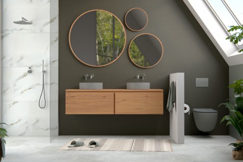Daarin vinden allerhande badkamerbenodigdheden een discrete plek. Voor nog meer comfort zijn er spiegels met anticondensverwarming en sensorbediening. Bijzonder is de spiegelkast met geïntegreerde, energiezuinige LED-onderverlichting. Deze zorgt voor extra veel licht boven de wastafel. De LED-spots hebben een warme gloed voor extra sfeer.