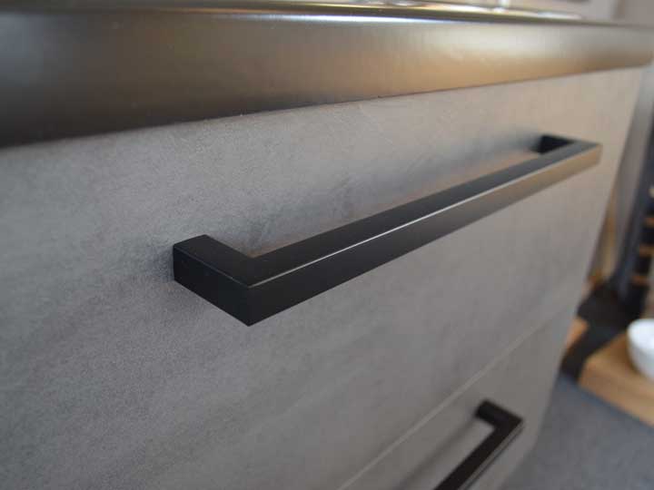 We hebben extra opties toegevoegd aan onze badmeubelserie Amador, zodat u uw badmeubel een industriële uitstraling kunt geven. Zo kunt u nu zwart matte grepen bijbestellen, en zelfs kiezen voor onze keramische wastafel Djazz in zwart mat.