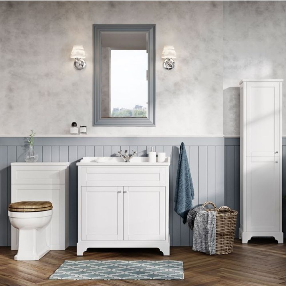 Traditionele ontwerpen met een modern tintje met soft close deuren en marmeren wastafelblad en keramische wastafel. Mooi te combineren met spiegel wandkast.