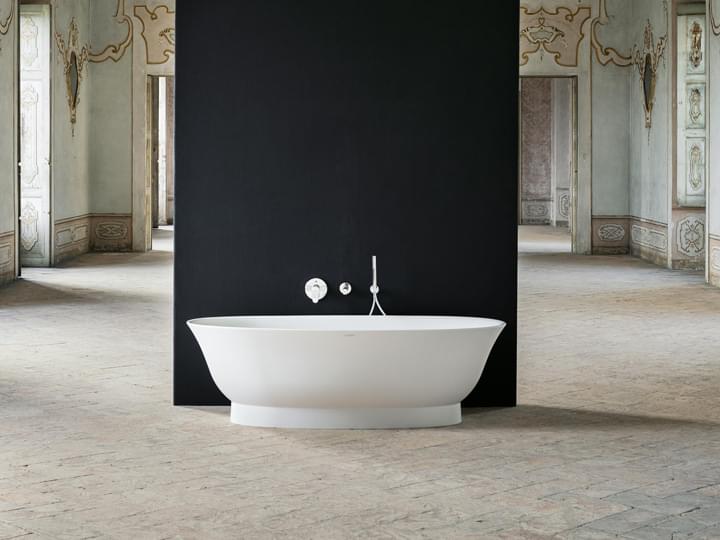 De badkuip met zijn royale afmetingen van1900 x 900 x 580 mm is een belangrijke, maar vanwege de zachte en klassieke lijnen die de hele collectie inspireren, elegante verschijning. De van Sentec, een huidvriendelijk materiaal, gemaakte ergonomische vorm nodigt uit tot totale ontspanning.