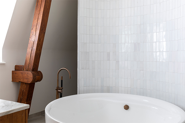 Thomas Coucke verzorgde niet alleen de complete verbouwing, hij richtte alles ook zelf in. Zijn grootste trots: de vier badkamers, die elk hun eigen stijl kregen mét bijpassende kranen van Hotbath. ‘Mijn doel was zo veel mogelijk van de oorspronkelijke sfeer te behouden en dat is aardig gelukt.’