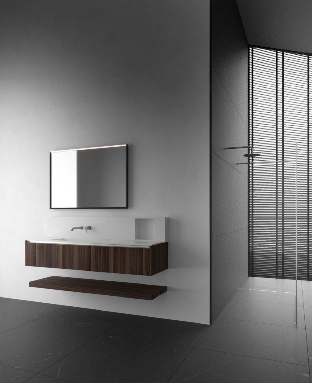 Assortiment badkamermeubels gericht op het opzetten van minimalistische ruimtes. Verkrijgbaar in vele verschillende prijssegmenten.