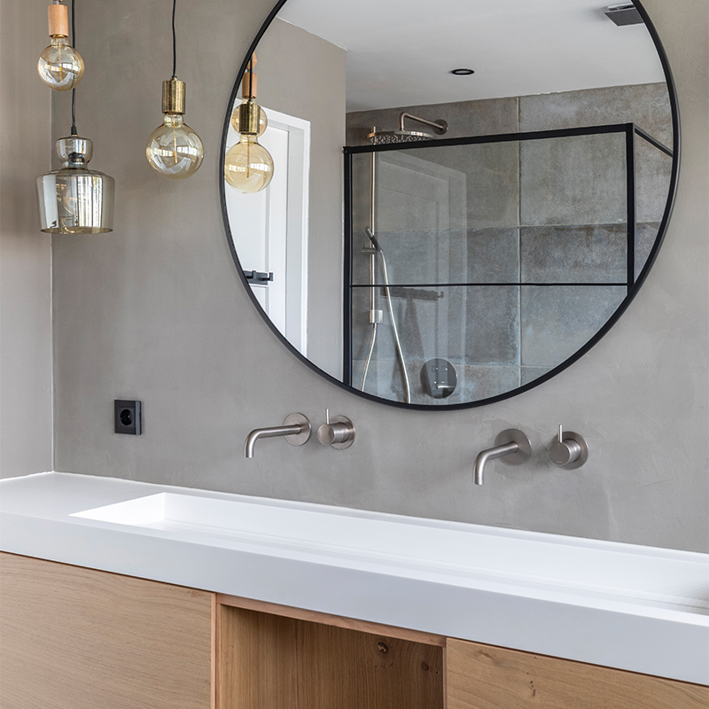 ‘Een nieuwe badkamer koop je maar een paar keer in je leven, dus het was een feest om onze plannen te realiseren.’ Karlijn en Daniel wilden graag een bad, een losse douche, een toilet en een wastafel met twee kranen. ‘Ik wilde graag een bad en Daniel had zijn oog laten vallen op een wastafel met dubbele kranen.’ Het stel heeft nog even getwijfeld of ze voor veilige keuzes in de badkamer moesten gaan of voor wat ze zelf het allermooiste vinden. Het werd dat laatste.