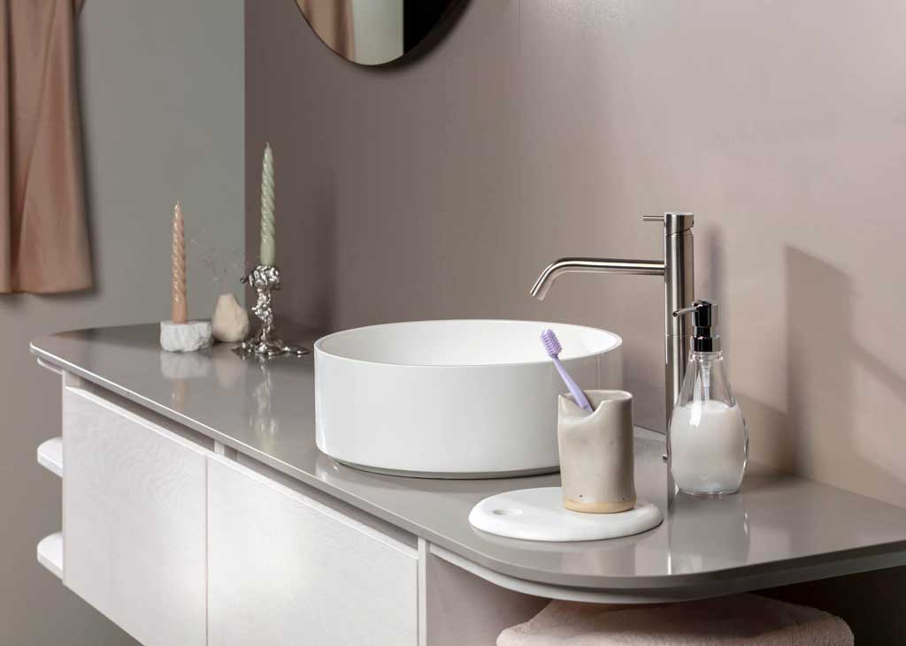 Natuurlijk vergeet Qisani de functionaliteit niet, maar het gevoel van ‘thuis in de badkamer’ overheerst. De verrassende eyecatchers uit de collectie stelen de show maar de ‘touch’ is en blijft levensecht.