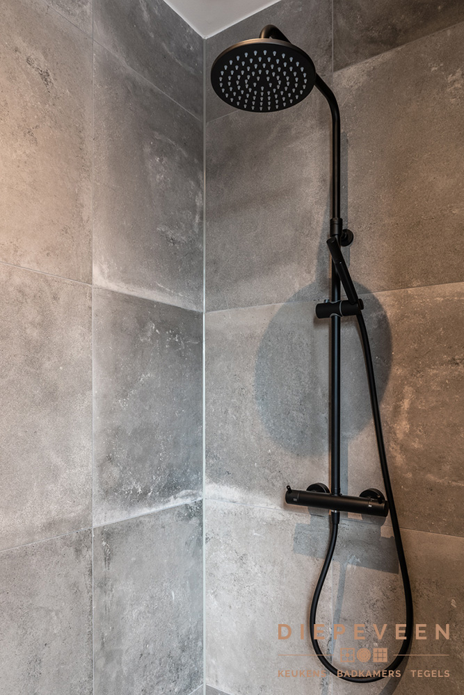 Prachtige moderne keuken. Mooi gecombineerd met een betonlook aanrecht blad en zwarte frontjes. Echt een eye-catcher.