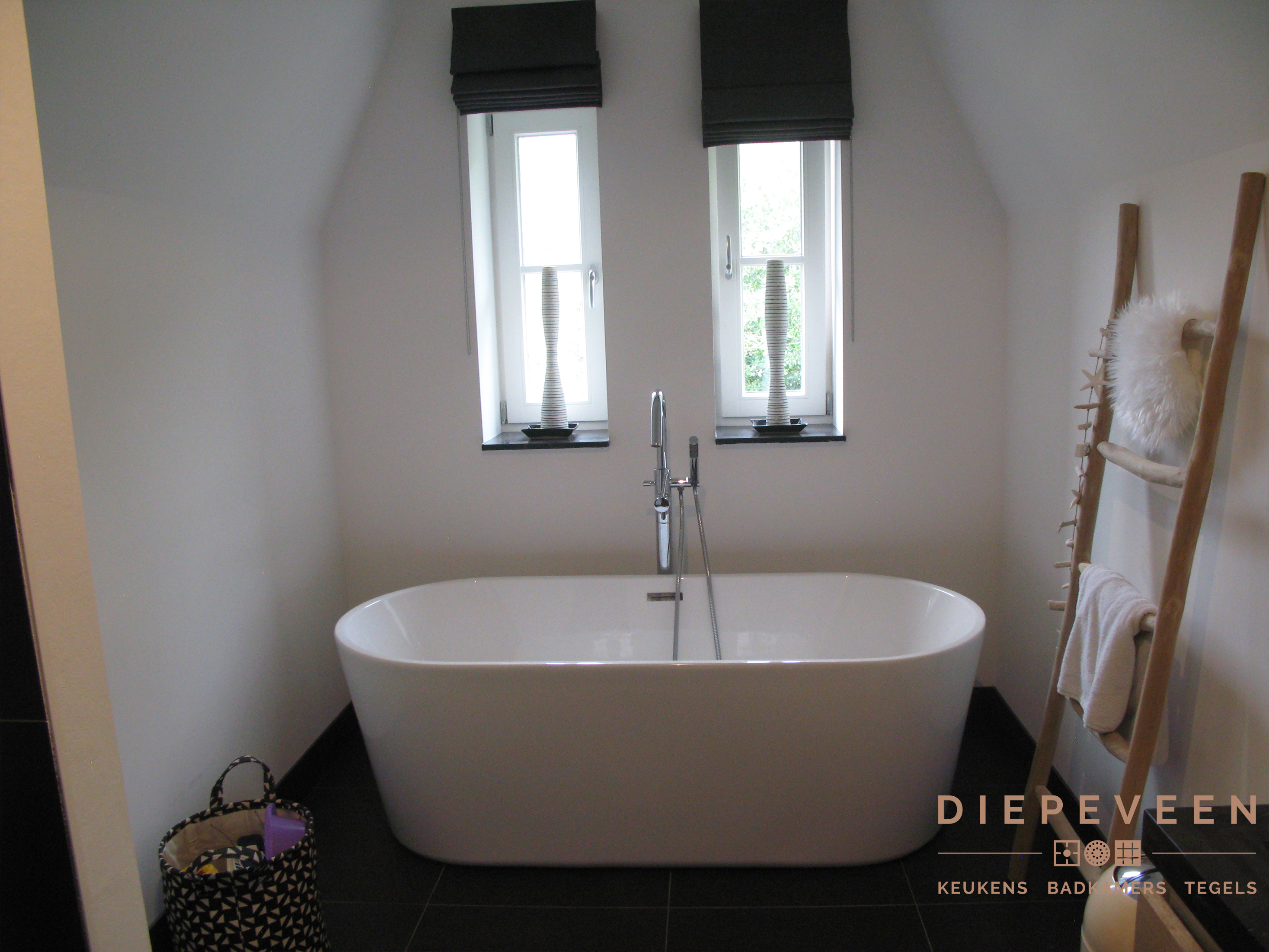 Wauw, wat een prachtige landelijke badkamer! Prachtig vrijstaand bad met een mooie badkraan.