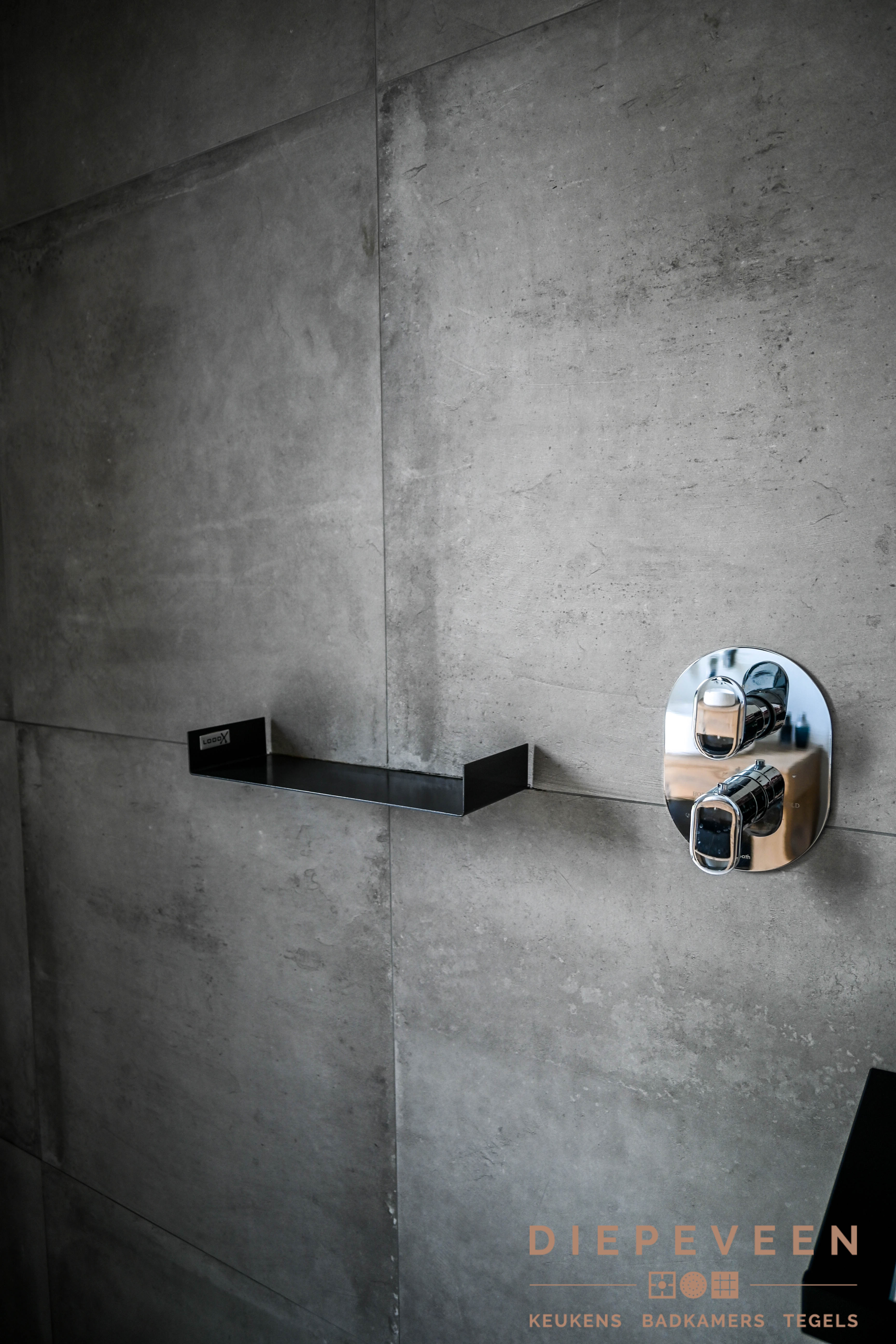 Een prachtige landelijke keuken. De zwarte grepen en het zwarte afzuigkap maken de keuken helemaal af.