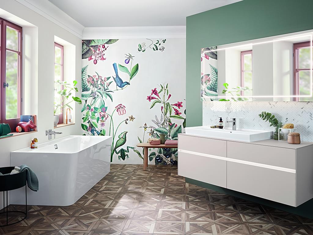 Collaro biedt een brede selectie van wastafelmeubels in 10 trendy kleuren. De collectie bevat hoge kasten en zijkasten voor nog meer opbergruimte. Een praktisch extraatje is het geïntegreerde wasmand in de hoge kast. De verzonken designrand in de lades van de meubels wordt verlicht door dimbaar licht.