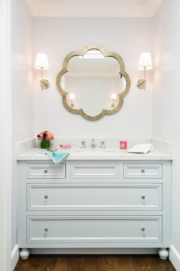 Goud en messing ordinair? Welnee, dat is juist hartstikke hip! Maar ga nooit voor teveel. Alleen als je het subtiel aanbrengt, hou je het chique. Met een mooie spiegel bijvoorbeeld, een badmeubel en misschien verder nog wat accessoires blijft het rustig en benadruk je de klassieke details.