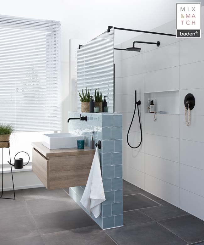 Maak tijdens het inrichten ook gebruik van de muur. Hierdoor blijft de vloer vrij, waardoor je badkamer groter lijkt. Bij de Baden+ winkels zijn er talloze mogelijkheden. Denk aan een hangend toilet, een hangende wastafel of een unieke wandplank!
