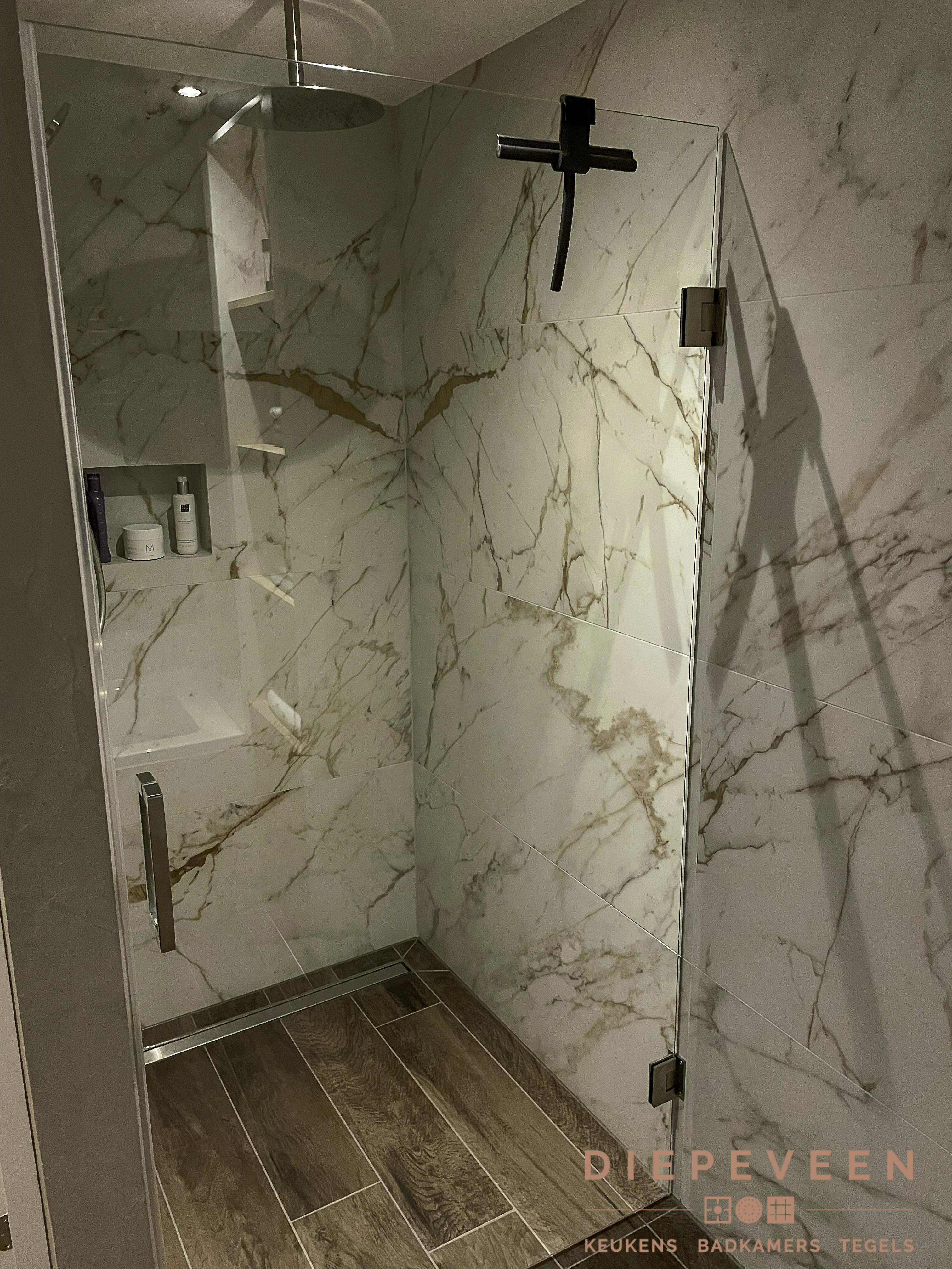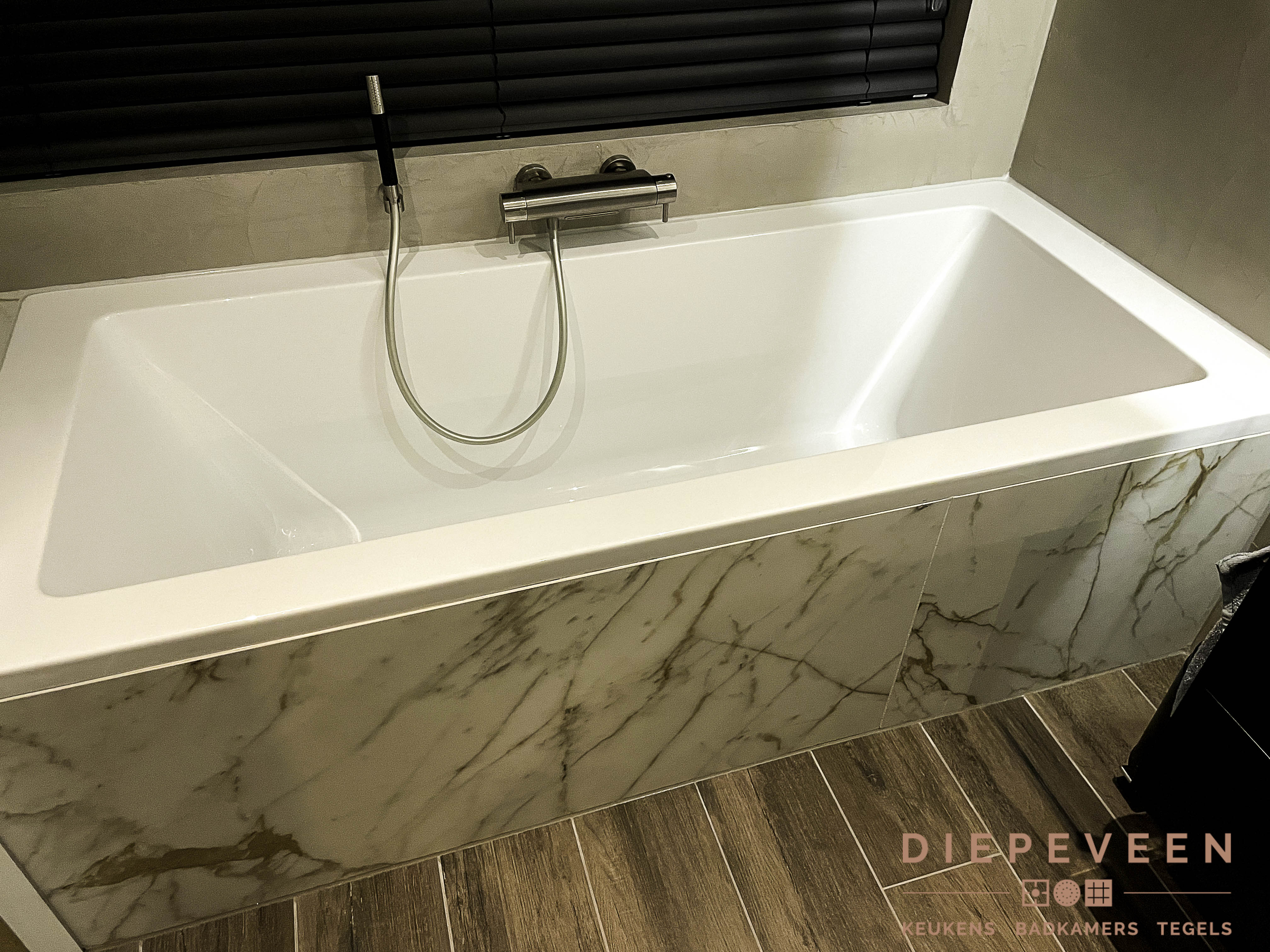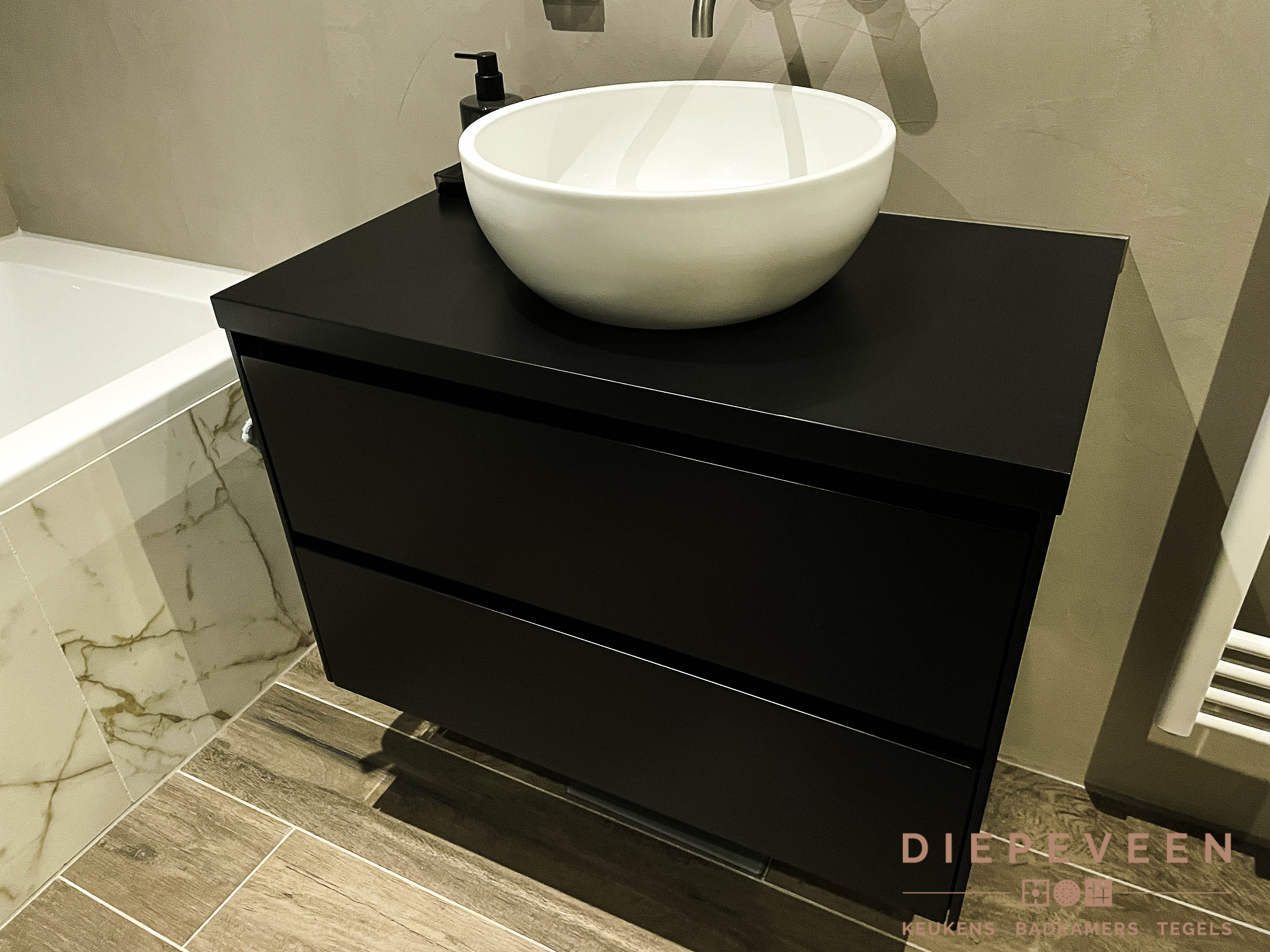 Stijlvolle tijdloze badkamer met mooi zwart badmeubel.